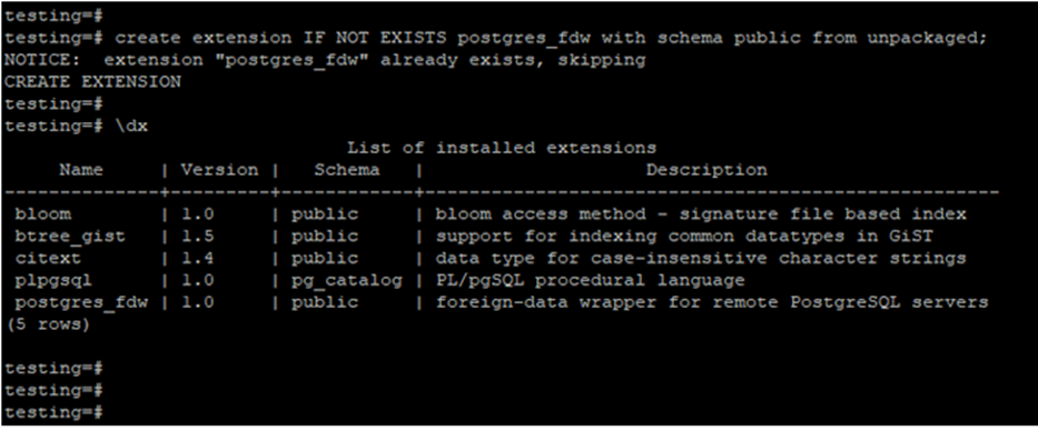 Estas se deben crear mediante el comando “create extension pg_stat_statements;”. Este cargará la extensión en el actual esquema o bien en el de interés. Para poder llevar a cabo la creación de una extensión se requieren privilegios del owner o bien del super user.