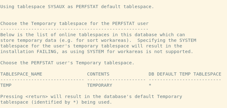 A continuación, se define el tablespace temporal que utilizará el usuario propietario de statpack: