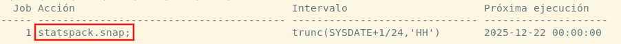 Para que Statspack tome snapshots de forma periódica, ejecutamos:
